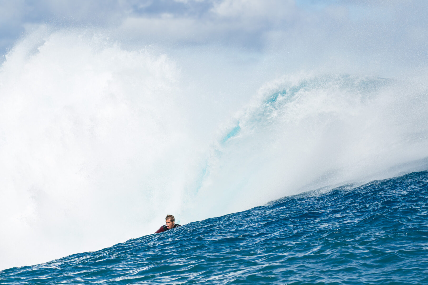 First step: I check the ocean and the waves from outside, read the currents, trying to understand the rip tide and to predict where the waves would break. If there is a good set coming, or if I see potential, I get my board ready. Second step: I paddle out. Third step: I sit in the channel and watch the ocean. A good way to grope slowly to the conditions. Fourth step: I paddle closer to the waves and maybe catch one. That’s my personal approach to overcoming my fears. But the key factors are physical training and mental strength. The more you train, the more fit you feel, physically and mentally. Of course, the material and a detailed safety plan with access to rescuing Jet Ski partners or protectives vests are important as well.